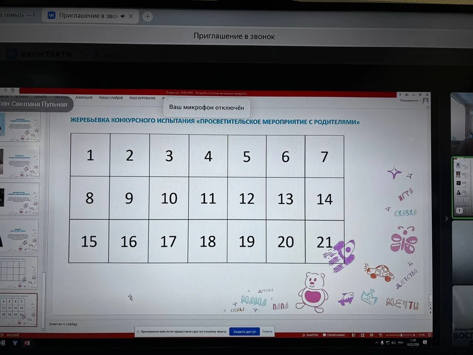 Церемония открытия прошла в онлайн-формате, собрав вместе всех участников и их команды поддержки. Были представлены конкурсанты, а затем состоялась волнующая жеребьевка, определившая порядок выступлений в испытаниях «Педагогическое мероприятие с детьми» и «Просветительское мероприятие с родителями». Это значит, что для всех причастных наступили дни напряженной работы, поиска самых ярких идей, которые помогут конкурсантам максимально раскрыть свой талант и показать все грани своего мастерства!
